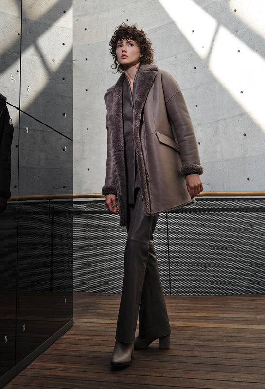 Fabio - Stone Shearling CoatFabio - Stone Shearling Coat