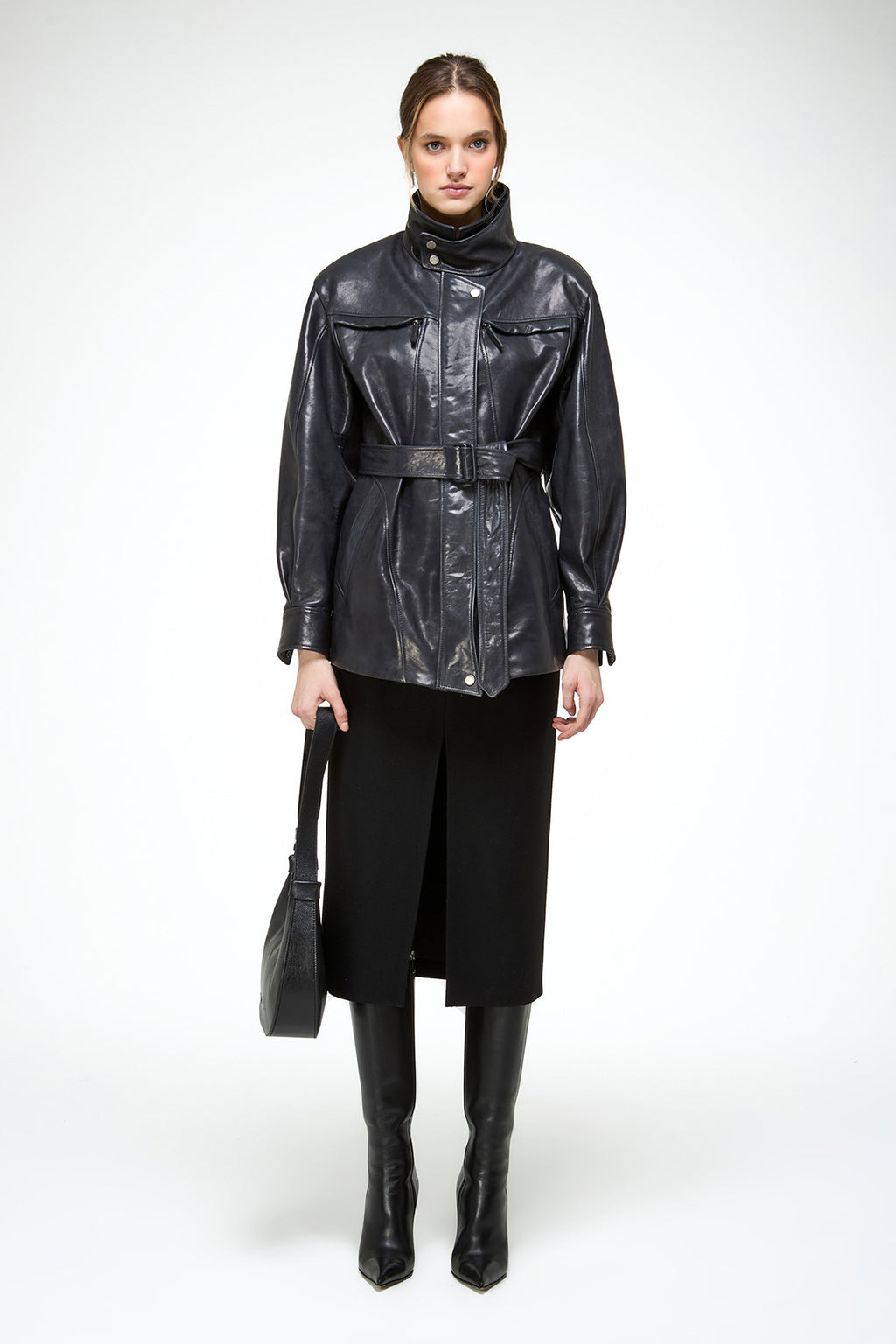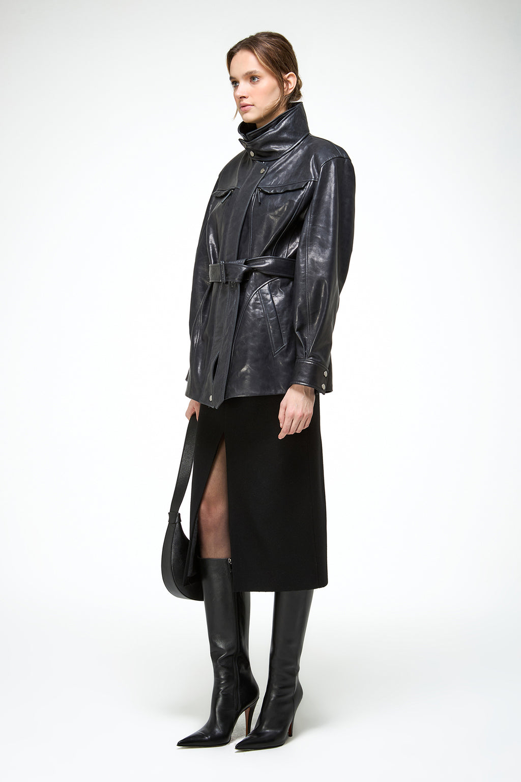 Chiara - Carbon Leather Coat