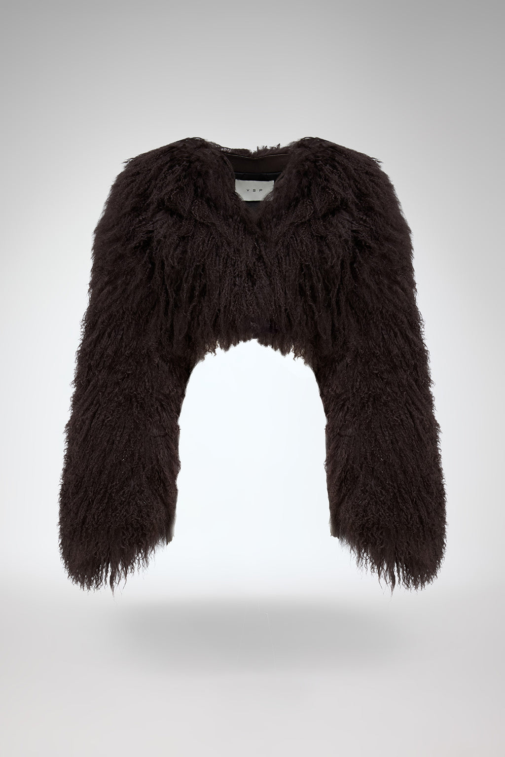 Crafted from plush Mongolian sheepskin, super cropped length jacket with hook fastening closure. Regular fit.