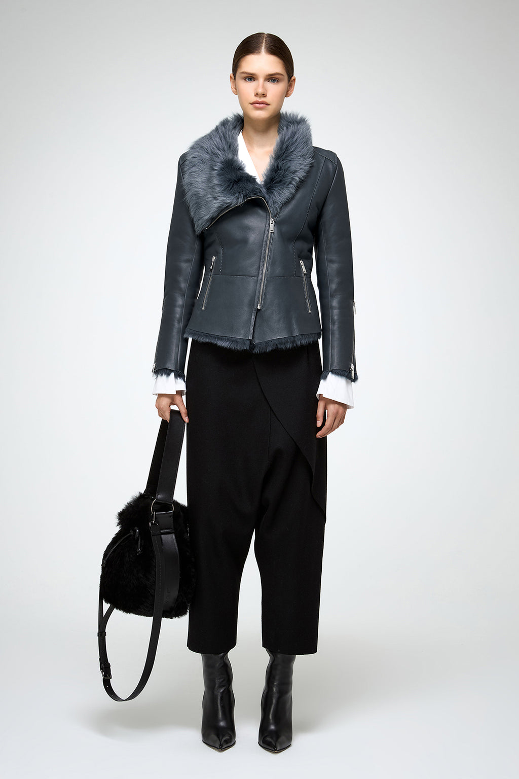 • Since leather is a natural material, it needs to breathe in a dry environment. Please store leather garments on padded hangers and cover them with a plain bed sheet or cloth coat bag.
