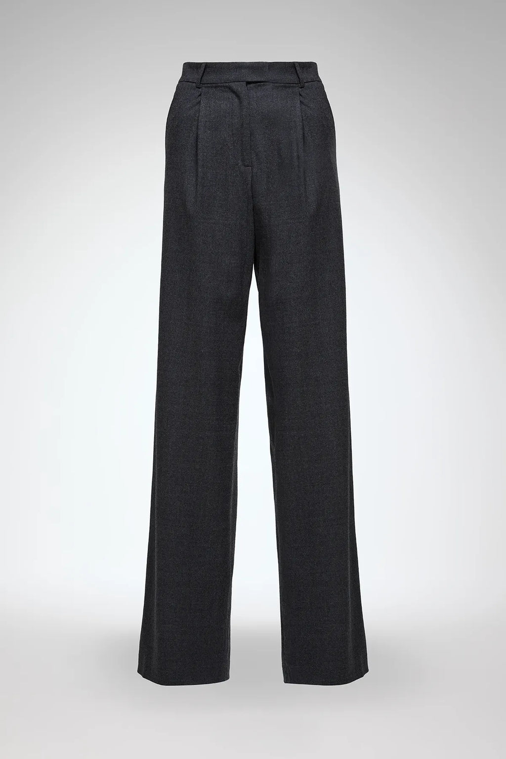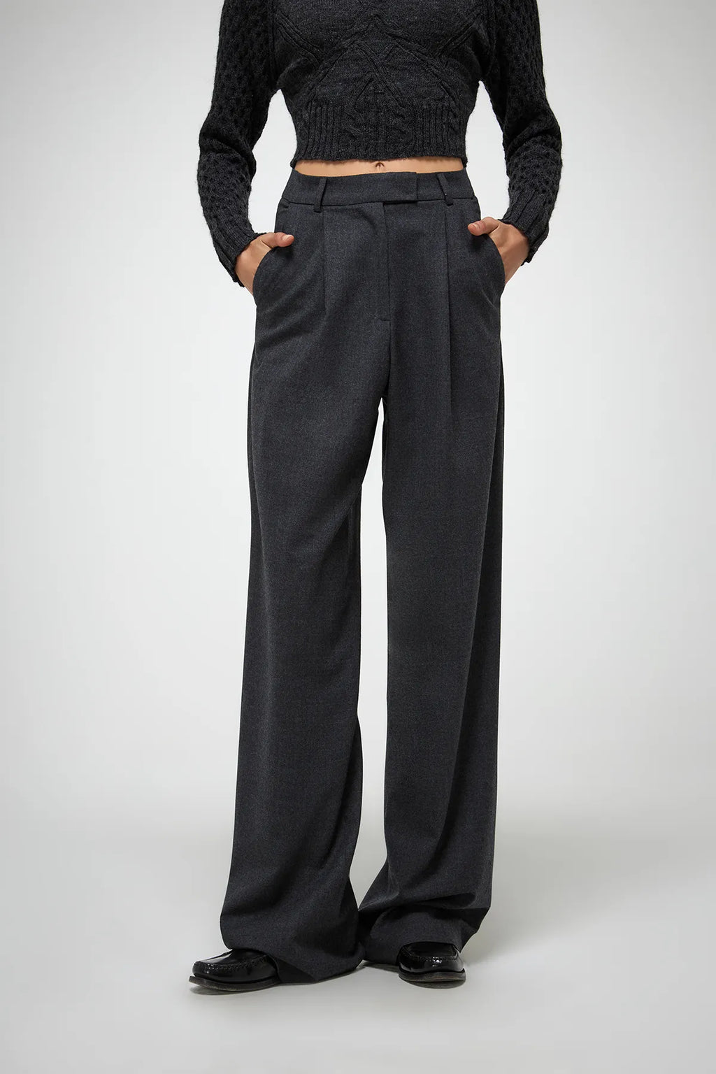 Hip-waisted, single-pleated tailored lycra pants. Side pockets.