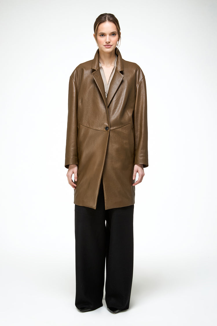 Bianca - Olive Leather Coat