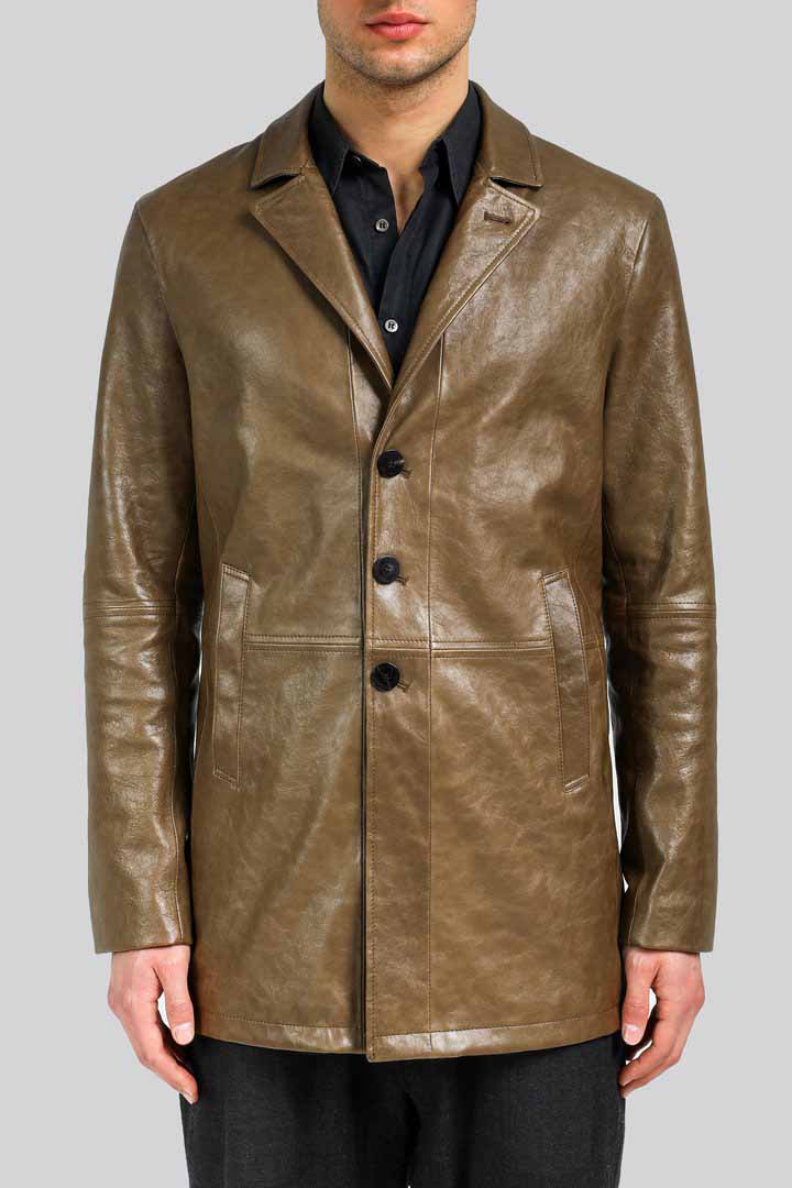 • Relaxed-fit genuine single-breasted leather jacket. Button closure. Side inseam pockets.
