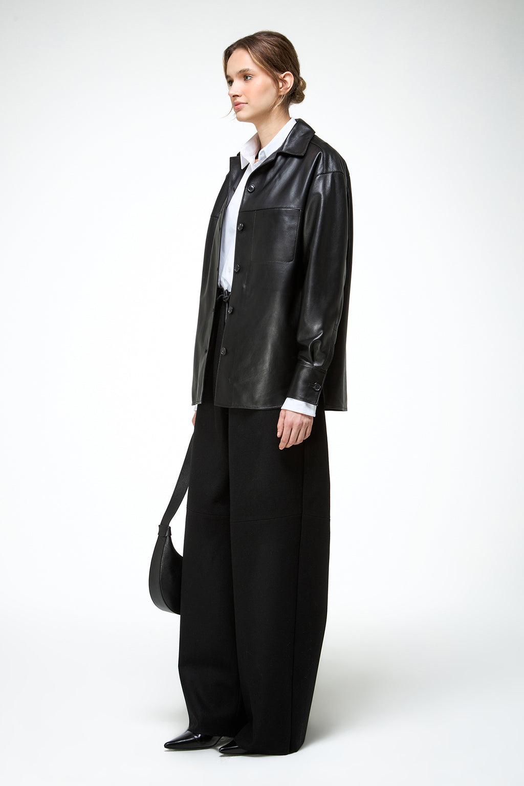 • Since leather is a natural material, it needs to breathe in a dry environment. Please store leather garments on padded hangers and cover them with a plain bed sheet or cloth coat bag.